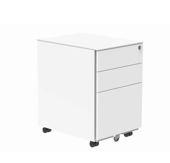 - White Wooden 3 Drawer -Mobile Pedestal – ( 560mm D x 420mm W x 590mm H )